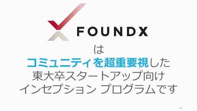 - 10. 10 は コミュニティを超重要視した 東大卒スタートアップ向け インセプション プログラムです