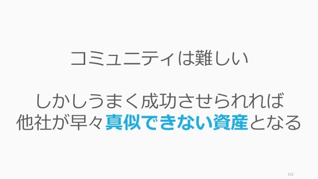 - 132. 132 コミュニティは難しい しかしうまく成功させられれば 他社が早々真似できない資産となる