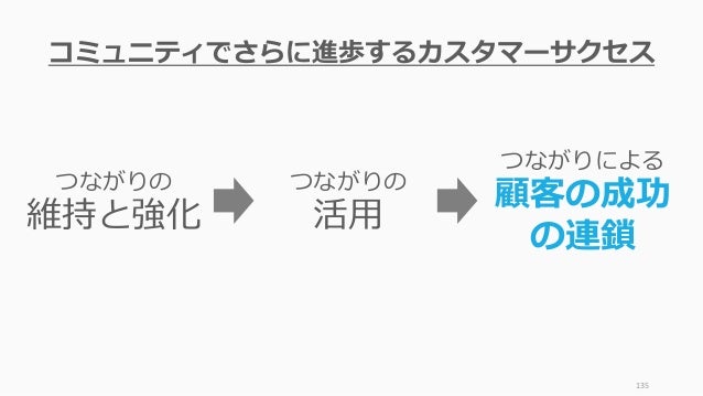 - 135. 135 つながりの 活用 つながりの 維持と強化 つながりによる 顧客の成功 の連鎖 コミュニティでさらに進歩するカスタマーサクセス