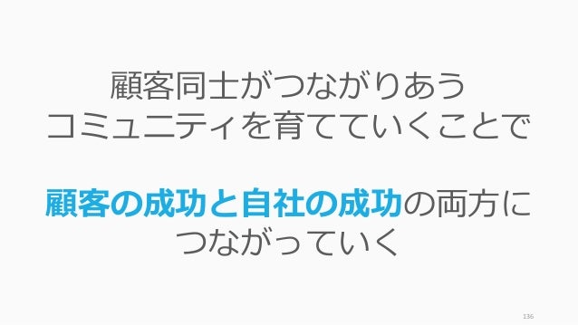 - 136. 136 顧客同士がつながりあう コミュニティを育てていくことで 顧客の成功と自社の成功の両方に つながっていく