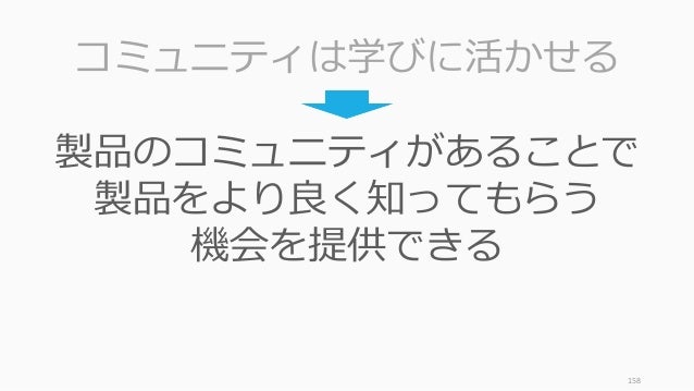 - 158. 158 コミュニティは学びに活かせる 製品のコミュニティがあることで 製品をより良く知ってもらう 機会を提供できる