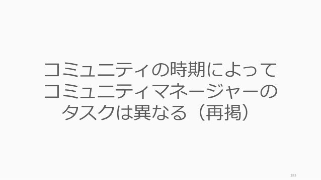 - 183. 183 コミュニティの時期によって コミュニティマネージャーの タスクは異なる(再掲)