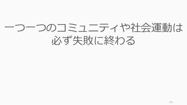- 190. 190 一つ一つのコミュニティや社会運動は 必ず失敗に終わる