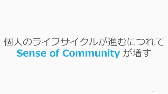 - 202. 202 個人のライフサイクルが進むにつれて Sense of Community が増す