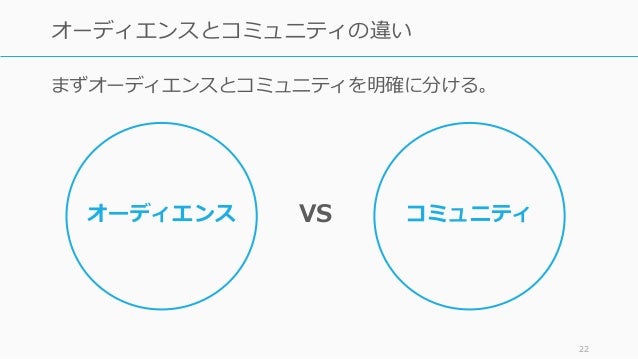 - 22. まずオーディエンスとコミュニティを明確に分ける。 22 オーディエンスとコミュニティの違い オーディエンス コミュニティVS
