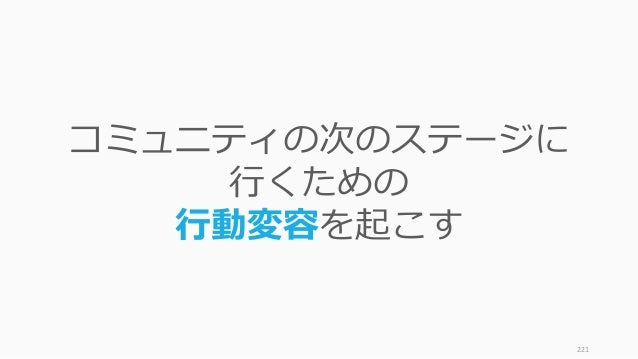 - 221. 221 コミュニティの次のステージに 行くための 行動変容を起こす