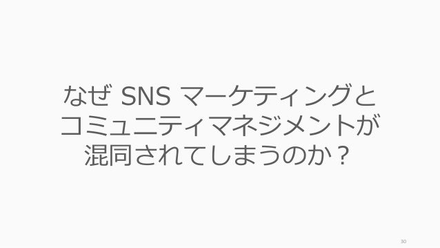 - 30. 30 なぜ SNS マーケティングと コミュニティマネジメントが 混同されてしまうのか?