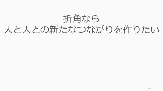 - 49. 49 折角なら 人と人との新たなつながりを作りたい ↓ コミュニティマネジメントへようこそ