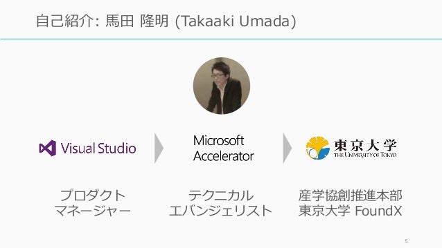 - 5. 5 自己紹介: 馬田 隆明 (Takaaki Umada) プロダクト マネージャー テクニカル エバンジェリスト 産学協創推進本部 東京大学 FoundX