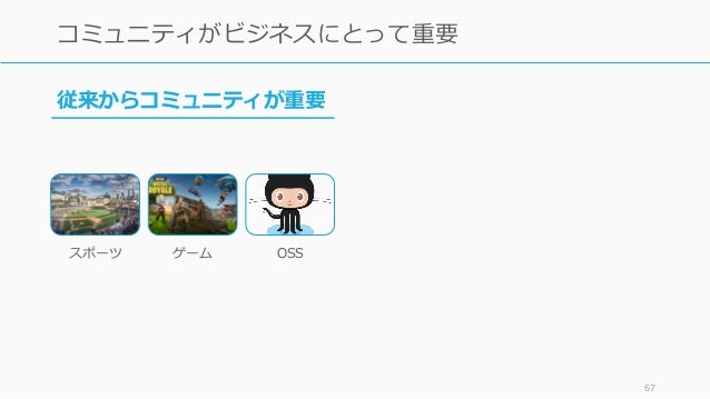 - 67. スポーツ ゲーム OSS 67 コミュニティがビジネスにとって重要 従来からコミュニティが重要