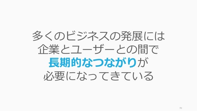 - 70. 70 多くのビジネスの発展には 企業とユーザーとの間で 長期的なつながりが 必要になってきている