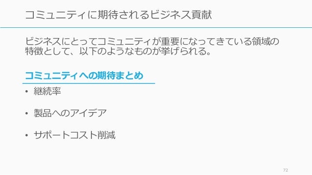 - 71. 71 そこでコミュニティへの期待が増す