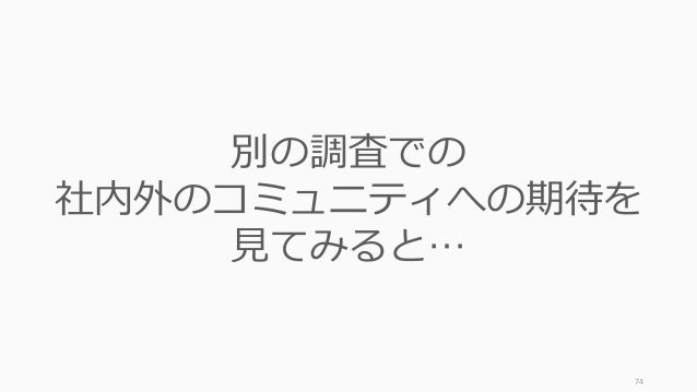 - 74. 74 別の調査での 社内外のコミュニティへの期待を 見てみると…