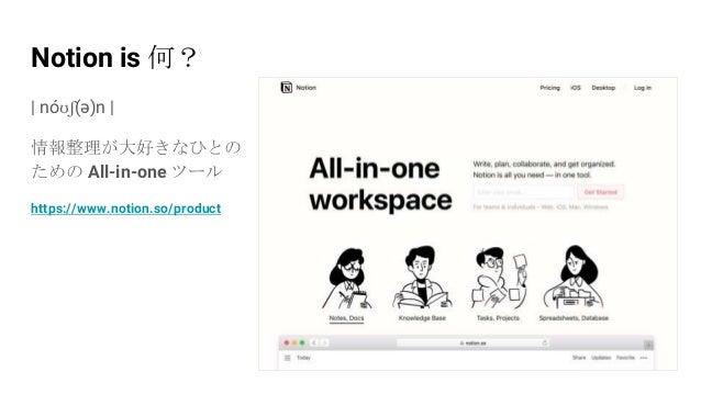 - 2. | nóʊʃ(ə)n | 情報整理が大好きなひとの ための All-in-one ツール https://www.notion.so/product Notion is 何?